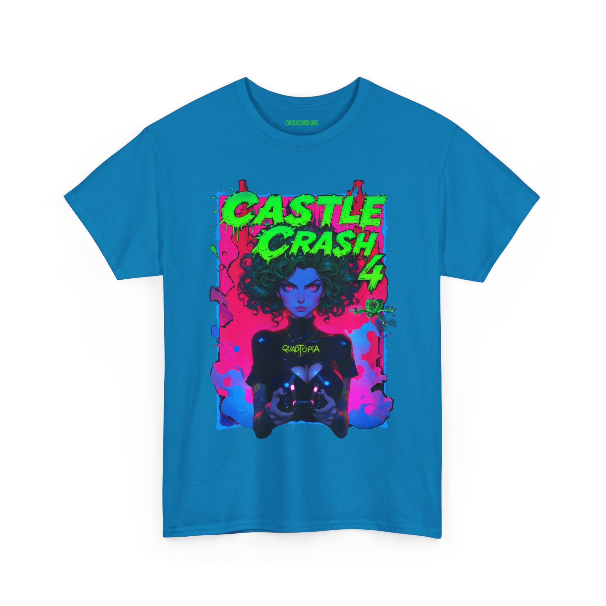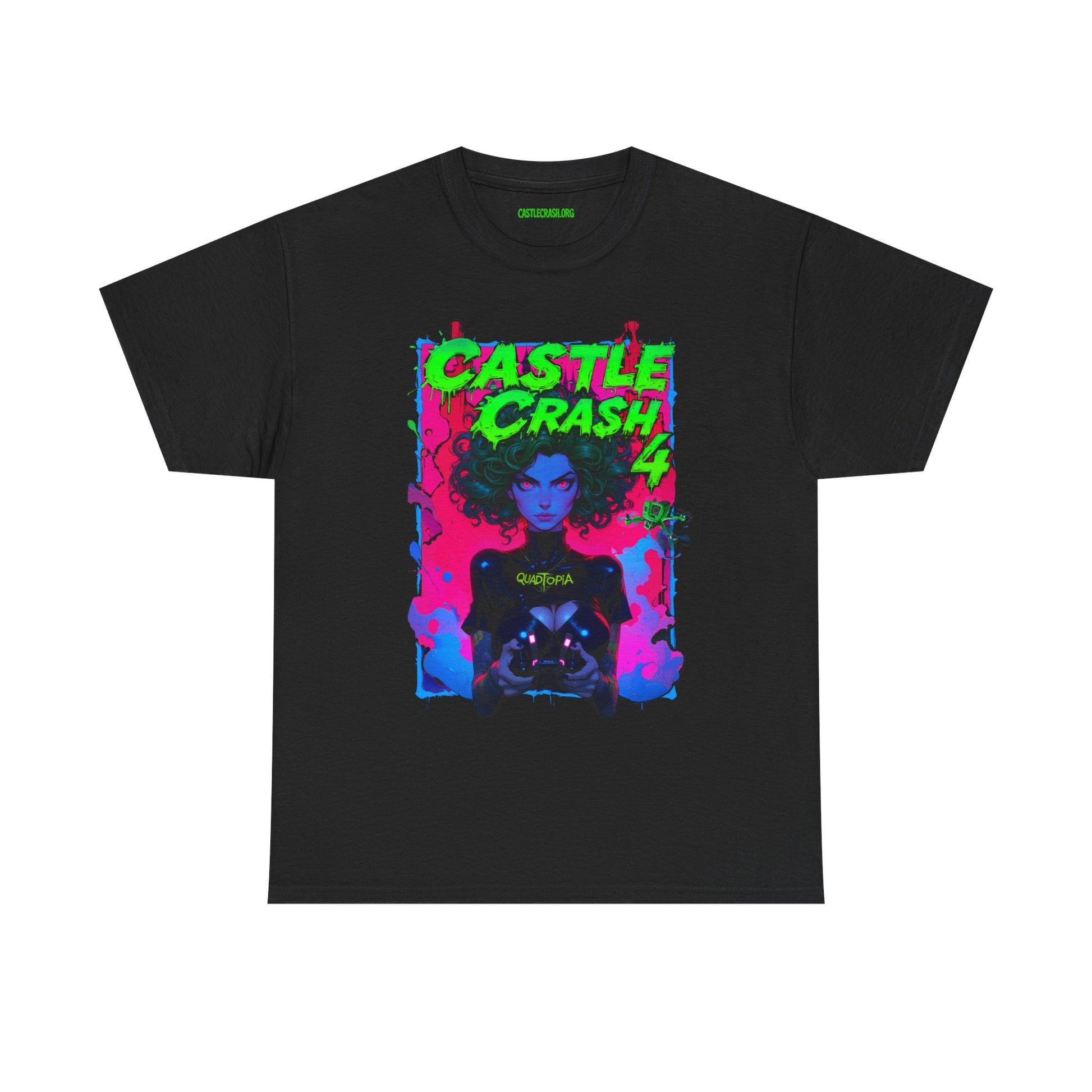 Level up your style and rep the madness of Castle Crash 4: QuadTopia with this electrifying, limited-edition t-shirt. Featuring the official CC4 Bando Queen artwork, this tee brings the chaos, the glow, and the adrenaline of the wildest FPV drone festival straight to your chest.